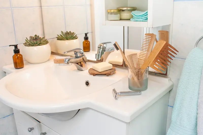 Replace harsh chemical cleaners with natural alternatives like white vinegar, baking soda, and plant-based cleaners that effectively clean without toxic fumes. Products like Force of Nature use electrolyzed water to create powerful disinfectants that are safe enough to use around children and pets. These natural solutions clean just as effectively while protecting your family from harmful chemical exposure and improving your bathroom’s air quality.